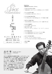 | 出演 | 品川聖(ヴィオラ・ダ・ガンバ) |